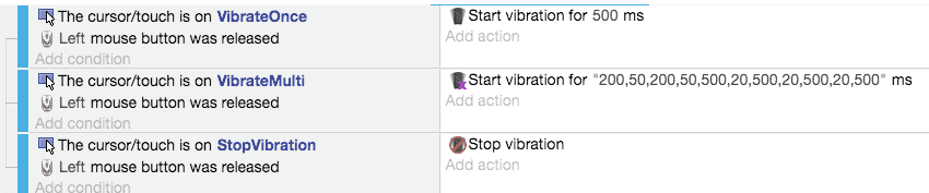 These actions give you access to the vibration functionality on mobile devices.