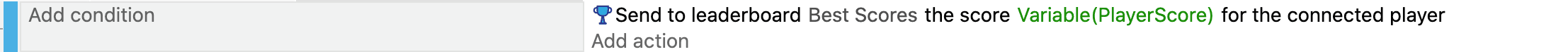 - Once it is done, you can either select the leaderboard you want to send the score to, or use an expression to define the unique id of the leaderboard (if it is stored in a scene variable for instance).