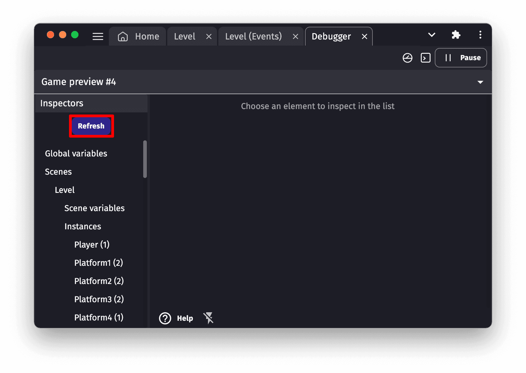 To do this, in the list, click on Global Variables, Scene variables, or the instance number that you want to inspect.