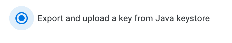 In the next screen, choose Export and upload a key from Java keystore, and then upload 2 files (see next section).