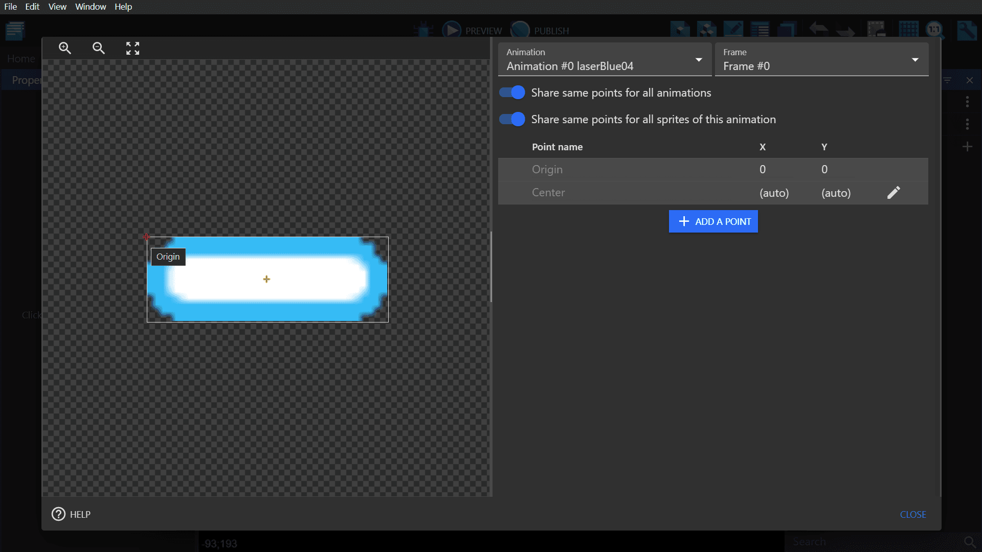 Go to your Player object and click "Edit points".\ Add a new point and place it in the middle of your ship, close to the nose. Name this point "BulletSpawn".
