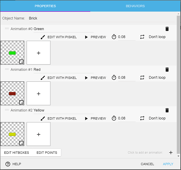 Save and preview your game. A player will now see a randomly-selected external layout with bricks in a random colour whenever the game is started.