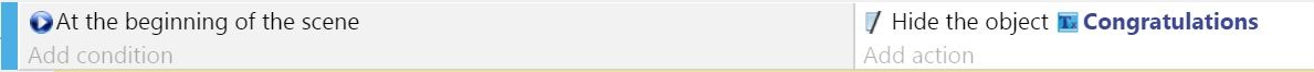 - Go to the existing event containing the condition "At the beginning of the scene" and click Add action.