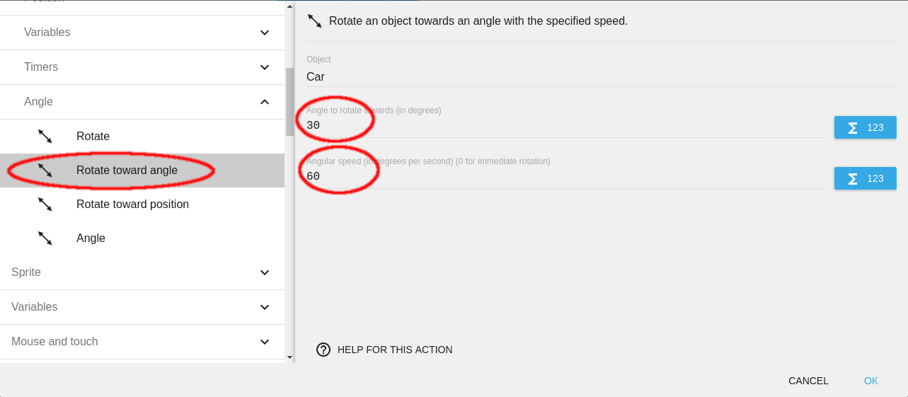 But before we move ahead, we also need to assign the Angular speed for the rotation. We will be using a value of 60 degrees/second for the same.