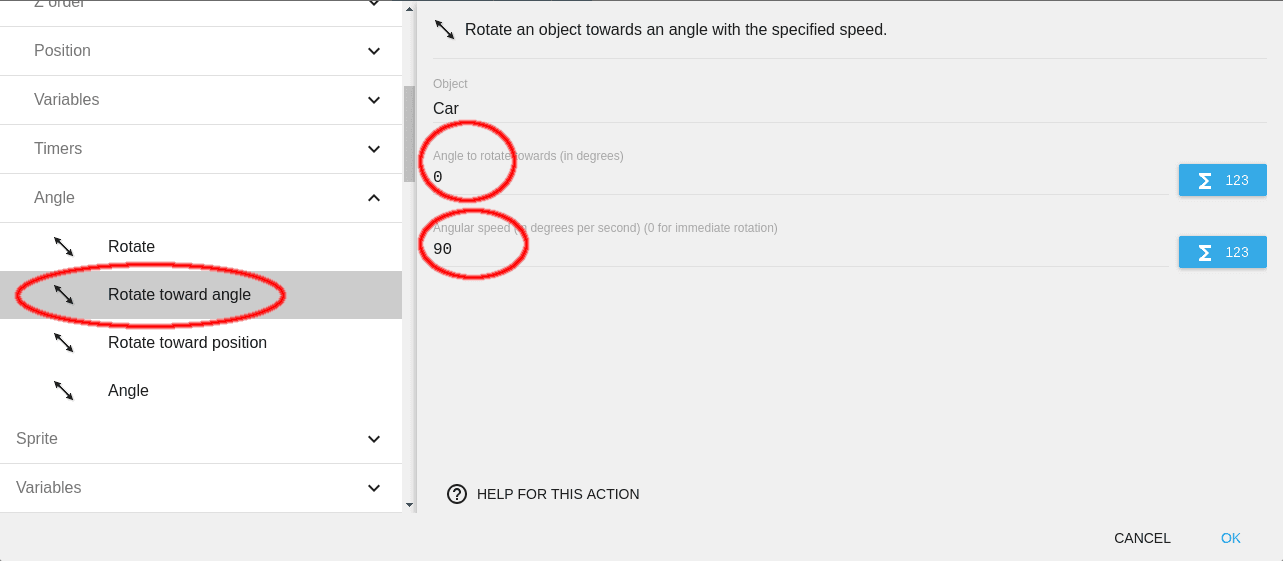 To display the score, we will make an event such that when any object in the group Traffic passes a predefined position, the value of the score is updated. To do this, we need to use the help of a scene variable.