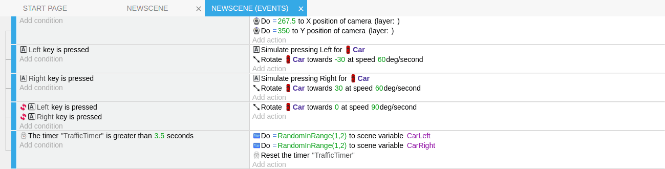 Our first event will include a condition that checks if the X position of the Car is less than 60 px.